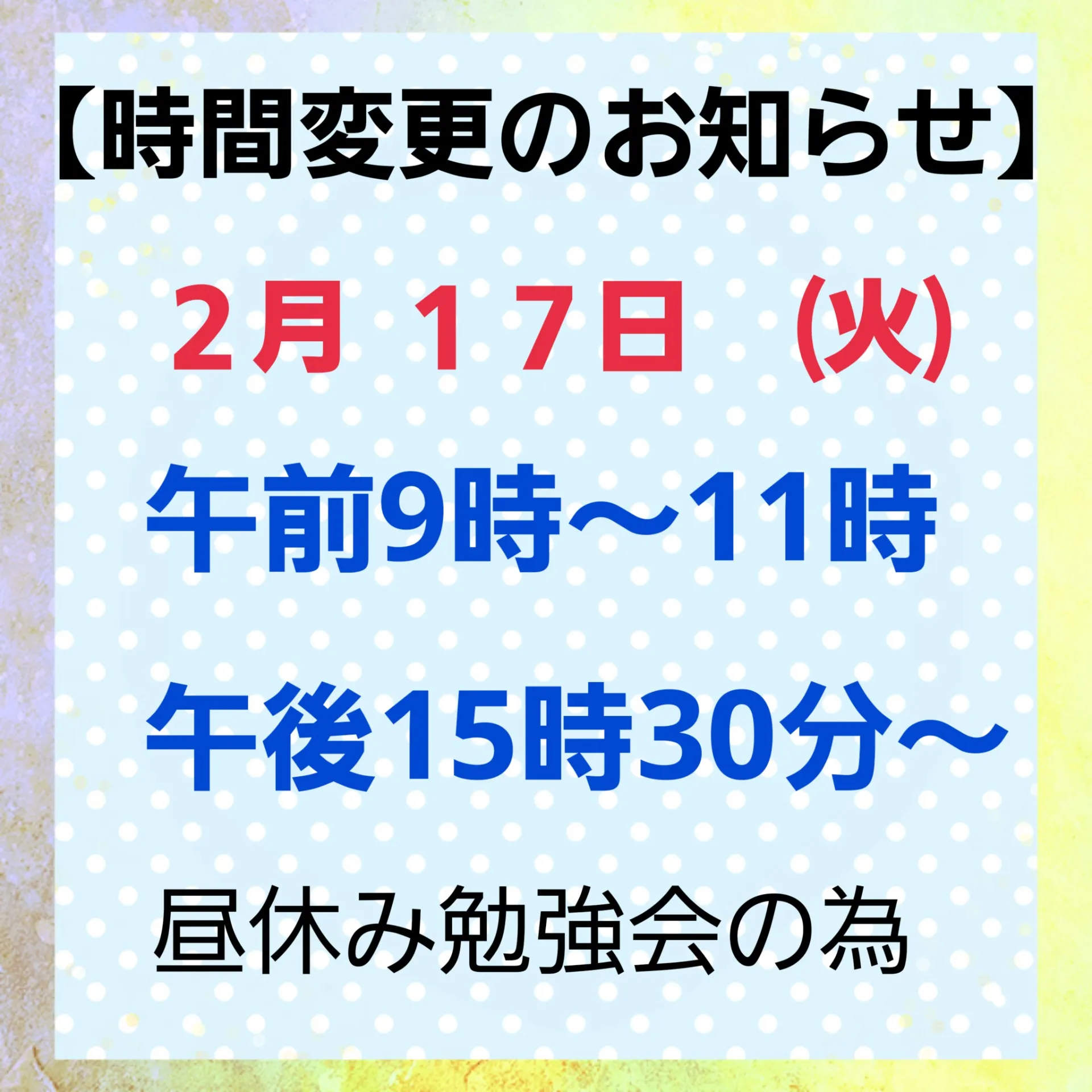 【時間変更のお知らせ】
